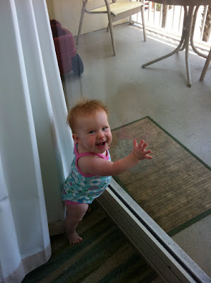 You are cruising around the house like nobodies business and can crawl faster than fast. You can say, "Bubba" and "bye bye".....most would question the difference between the two. You know the difference. You wave when saying "bye bye" and point when talking to your brother. So smart, Lil Lady!