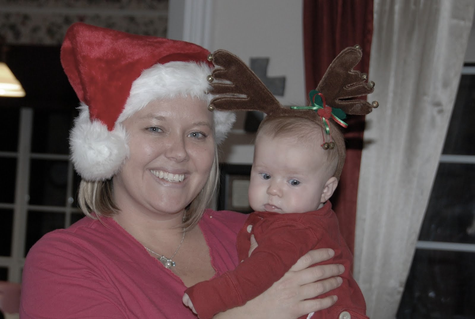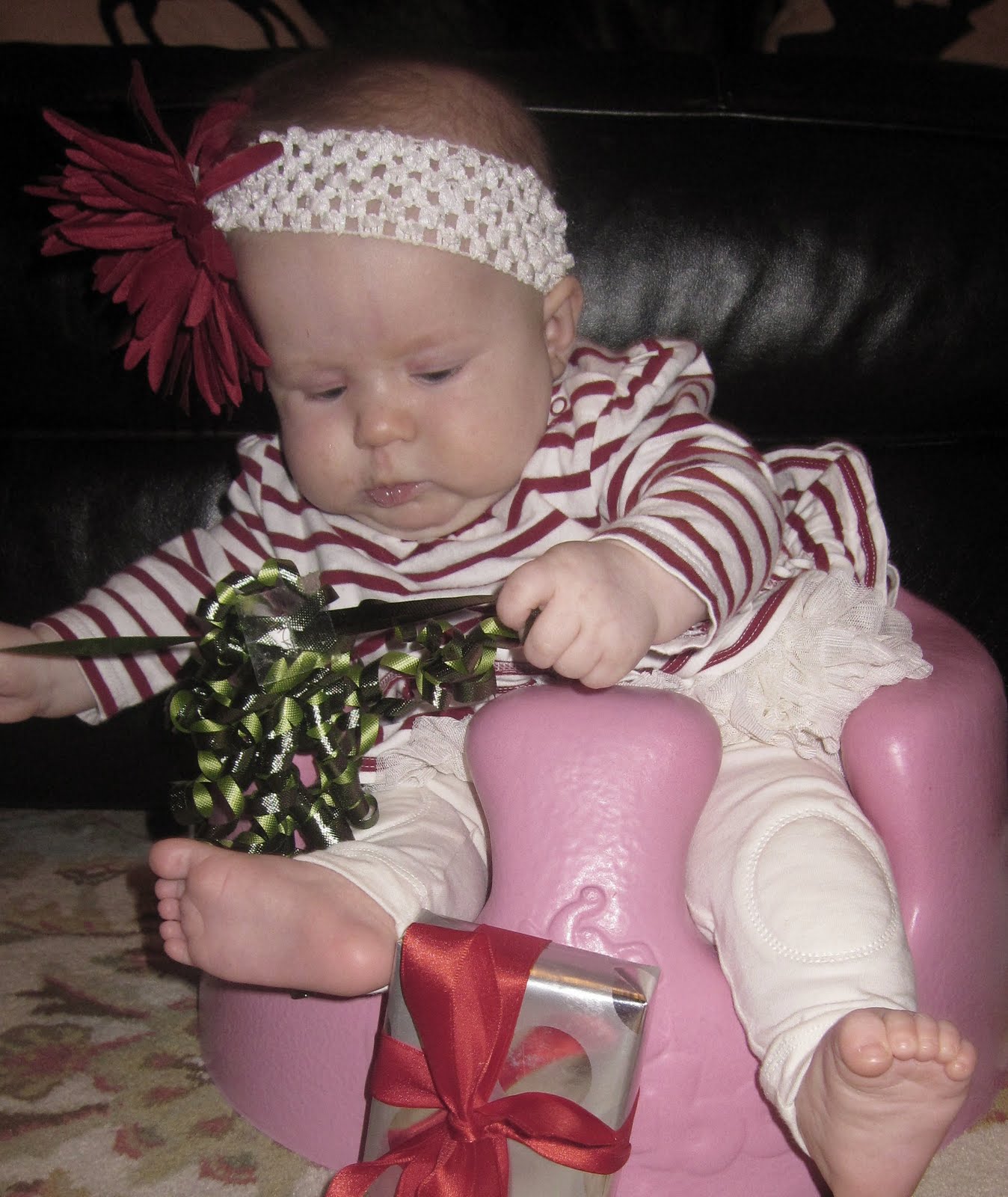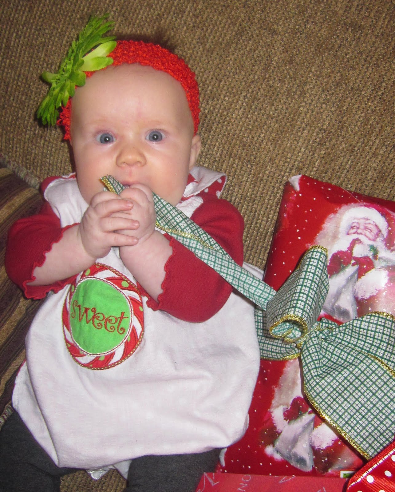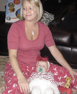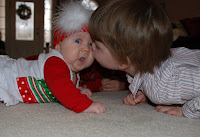 We slept in on Christmas morning and woke to yummy breakfast casserole and cinnamon rolls.....and then it was the girls turn. They both were decked out in their Christmas pretties and just giggled and cooed at all of their sweet presents.
