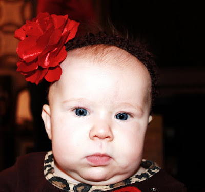 Rylee, at 6 months you are weighing in at 17.7 lbs and are 26.5m inches long. That puts you in the 85th % tile for both!! Dr Terry was so impressed! You are rolling all over the place and can sit up for about a minute before tiring out. You are wearing 6-9 months in clothes, size 2 shoes, and size 3 diapers. I put you in a size 4 at night.