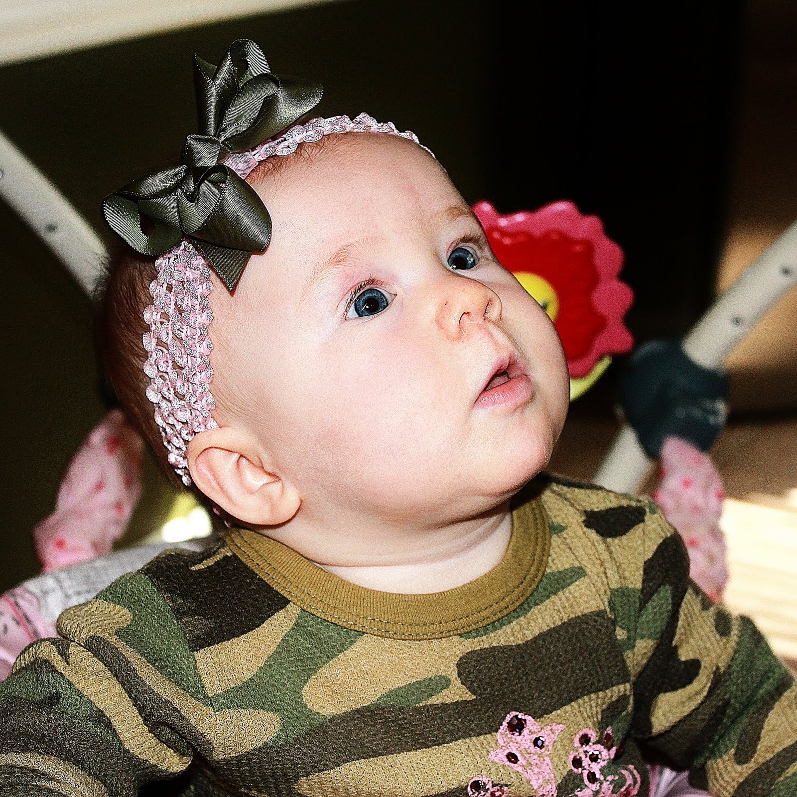 This past month, you have blossomed into such a big, little girl! You can sit for hours on end...in the bath....on the floor....in a chair.....you're just sittin' pretty, Love!